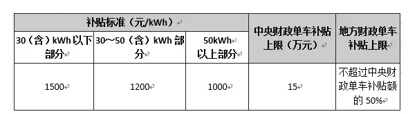 新能源貨車和專用車以提供驅(qū)動動力的動力電池總儲電量為依據(jù),采取分段超額累退方式給予補(bǔ)貼,具體如下:
