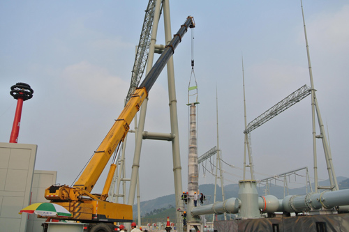 據(jù)悉項目負責人介紹,該特高壓套管采用瓷質(zhì)材料,大而易碎,大大增加了套管安裝的難度系數(shù)。為此,負責施工的浙江省送變電工程公司科學組織,嚴格落實各項措施,創(chuàng)新吊裝安裝方法,歷經(jīng)6個多小時的精心施工,成功將該套管與GIS封閉式組合電氣緊密連接。