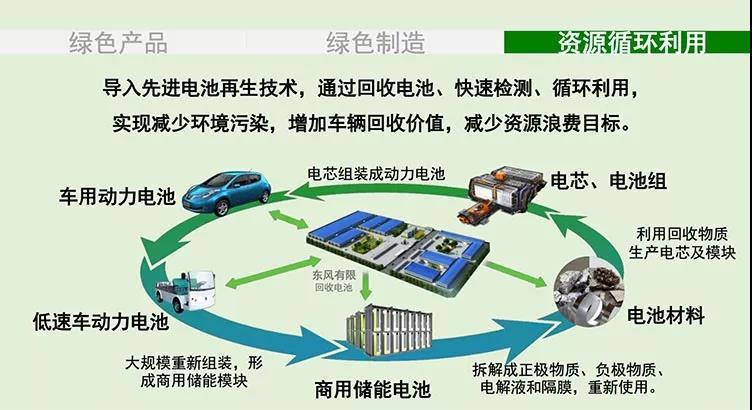 在資源再利用方面,東風(fēng)有限計(jì)劃導(dǎo)入先進(jìn)的電池再生技術(shù),通過回收電池、快速檢測、循環(huán)利用,來實(shí)現(xiàn)減少環(huán)境污染,增加車輛回收價(jià)值,減少資源浪費(fèi)的目標(biāo)。該計(jì)劃的獨(dú)到之處是建立商用儲能設(shè)備,通過回收電池儲能,并利用谷電或可再生能源充電,向電動汽車和社會穩(wěn)定供電。