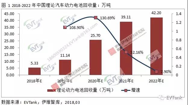 中國(guó)儲(chǔ)能網(wǎng)訊:近日,研究機(jī)構(gòu)EVTank聯(lián)合伊維經(jīng)濟(jì)研究院在北京發(fā)布了《中國(guó)汽車動(dòng)力電池回收拆解及梯次利用行業(yè)發(fā)展白皮書(shū)(2018)》,白皮書(shū)數(shù)據(jù)顯示,2020年預(yù)計(jì)中國(guó)國(guó)內(nèi)汽車動(dòng)力電池回收量將達(dá)到25.7萬(wàn)噸,2022年這一數(shù)據(jù)將達(dá)到42.2萬(wàn)噸。EVTank在白皮書(shū)中分析認(rèn)為,理論汽車動(dòng)力電池回收量增長(zhǎng)速度逐步放緩的主要原因在于隨著動(dòng)力電池技術(shù)的逐步提升,動(dòng)力電池能量密度的提升將導(dǎo)致同等電量的動(dòng)力電池重量逐步減輕。