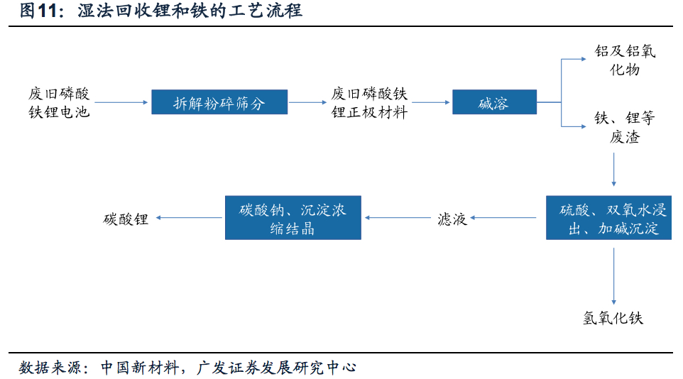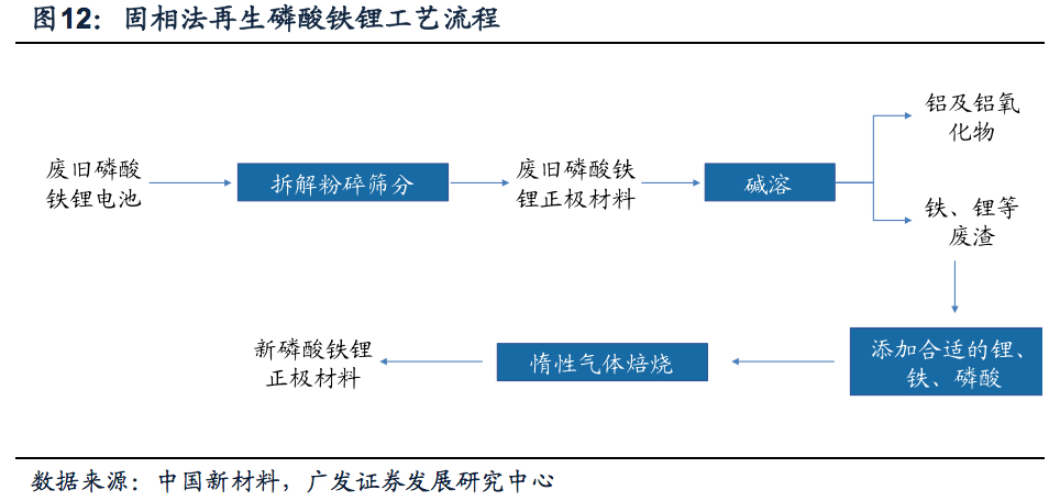 因為磷酸鐵鋰電池中不含有鈷等貴重金屬,單純回收某種元素經(jīng)濟效益不高,因此固相法再生磷酸鐵鋰電池是目前廢舊磷酸鐵鋰處理的主流方向,并具有很高的回收效益,資源綜合利用率最高。