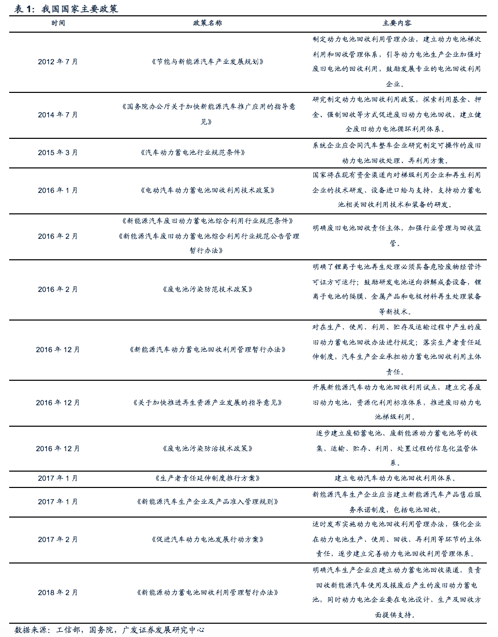 1.1、 動力電池回收行業(yè)迎政策加碼,試點工作被首次提上議程