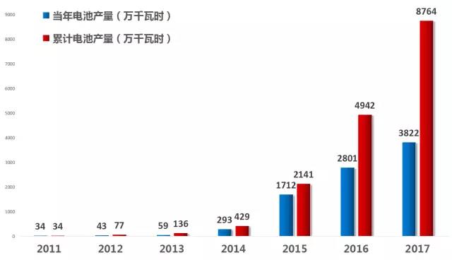 圖2:2011-2017年車載動力電池產(chǎn)量