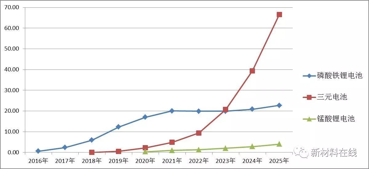 圖 5 各類型鋰動(dòng)力電池逐年退役情況預(yù)測(單位:Gwh)