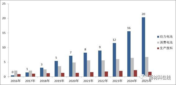 圖 2 鋰動(dòng)力電池逐年退役量預(yù)測(單位:Gwh)