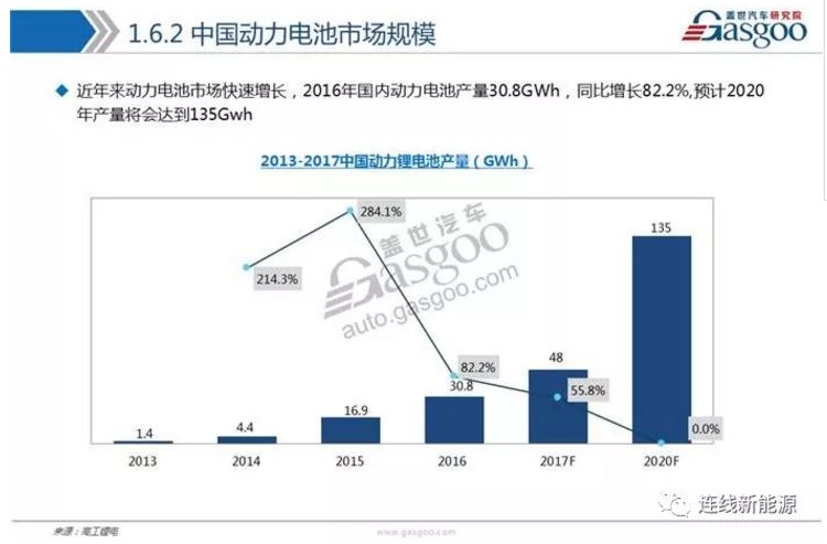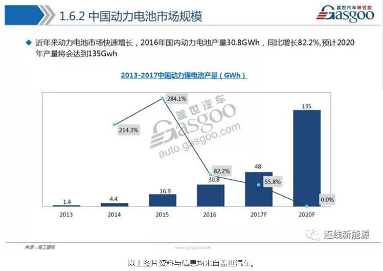 據(jù)最新數(shù)據(jù)顯示,2016 年中國汽車動力電池產(chǎn)量 30.8 GWh,同比增長 82%。從技術(shù)路線來看,2016 年三元動力電池的比例有較大上升,從 2015 年的 23% 上升至2016 年的 28%。