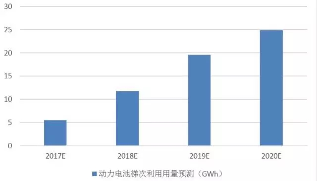 隨著新能源汽車(chē)動(dòng)力電池逐漸進(jìn)入報(bào)廢期,動(dòng)力電池退役數(shù)量將呈爆發(fā)式增長(zhǎng),動(dòng)力電池梯次利用市場(chǎng)增長(zhǎng)加快。據(jù)中國(guó)電池聯(lián)盟統(tǒng)計(jì),到2020年,動(dòng)力電池的報(bào)廢量為29.50GWh,約有32.77萬(wàn)噸。