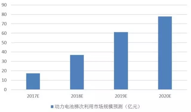 動(dòng)力電池梯次利用市場(chǎng)規(guī)模預(yù)測(cè)(單位:億元)