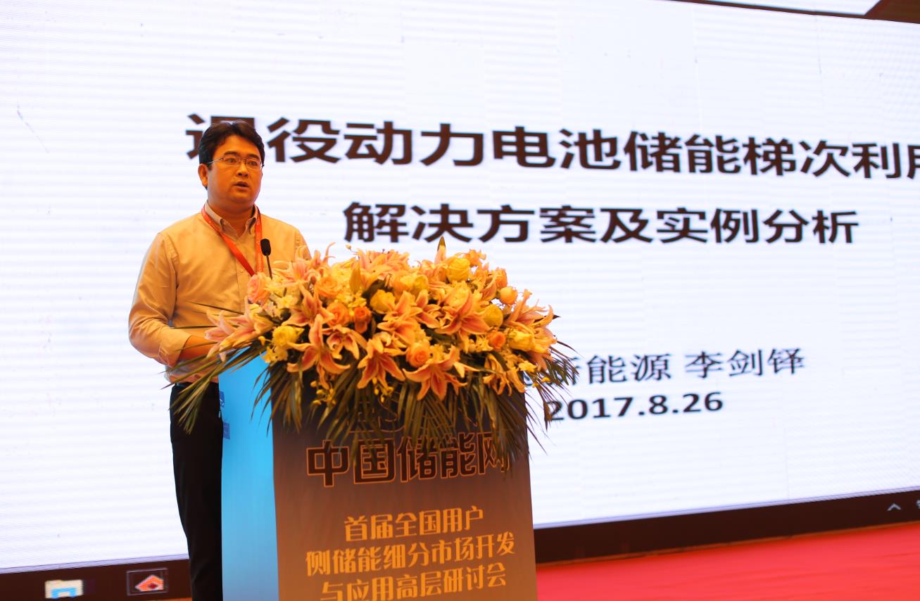 中國儲能網(wǎng)訊:8月25-26日,首屆全國用戶側(cè)儲能細(xì)分市場開發(fā)與應(yīng)用高層研討會在江蘇無錫太湖飯店召開。會議由江蘇省電機(jī)工程學(xué)會、國網(wǎng)江蘇省電力公司電力科學(xué)研究院、全國微電網(wǎng)與分布式電源并網(wǎng)標(biāo)準(zhǔn)化技術(shù)委員會、中國化學(xué)與物理電源行業(yè)協(xié)會儲能應(yīng)用分會聯(lián)合主辦。中恒電氣上海煦達(dá)新能源科技有限公司受邀與近400位產(chǎn)學(xué)研高層共同探討儲能發(fā)展未來。公司總經(jīng)理李劍鐸在會上就退役動力電池儲能梯次利用問題發(fā)表演講。