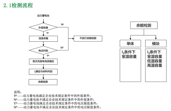 廢舊動力電池經(jīng)過長時間的使用,也可能出現(xiàn)物理結(jié)構(gòu)的松動和電解液漏液等情況,給廢舊動力電池二次利用帶來安全隱患。因此,廢舊動力電池的剩余容量的檢測方法無疑是其二次使用安全的重要保障?!队嗄軝z測》規(guī)范了動力電池外觀檢查、極性檢測、電壓判別、充放電電流判別、余能測試等檢測流程,為車用動力電池的余能檢測提供評價依據(jù)。標(biāo)準(zhǔn)的實施,將有助于提高廢舊動力蓄電池余能檢測的安全性和科學(xué)性。