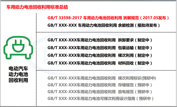 6月29日,GB/T33598-2017《車用動力電池回收利用拆解規(guī)范》(下稱《拆解規(guī)范》)及《車用動力電池回收利用余能檢測》(下稱《余能檢測》)國際標(biāo)準(zhǔn)宣貫會正式在張家港舉行,據(jù)悉,《拆解規(guī)范》已于5月17日公示發(fā)布,并確定于2017年12月1日正式開始實施?!队嗄軝z測》已經(jīng)通過報批,有望于2018年內(nèi)正式發(fā)布實施。