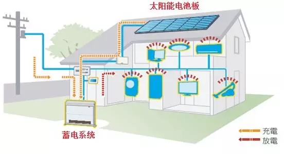 將報(bào)廢的鋰電池用來組建用于太陽能發(fā)電、風(fēng)力發(fā)電的蓄電系統(tǒng),是當(dāng)前比較熱門的應(yīng)用方向之一。在這方面,日本企業(yè)算是先行者,包括日產(chǎn)和住友合資的4R Energy、SHARP、NEC等企業(yè)在內(nèi)的多家日本公司,都在進(jìn)行這種蓄電系統(tǒng)的研發(fā)和應(yīng)用,有的主要面向電力公司,有的主要面向家庭。下圖即是蓄電系統(tǒng)應(yīng)用在家庭住宅的一個(gè)例子。