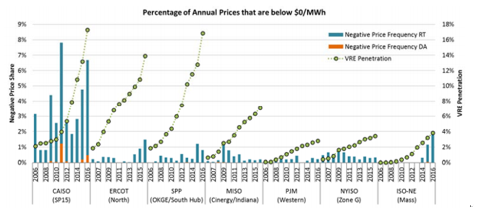 Pfeifenberger說,當(dāng)系統(tǒng)達(dá)到靈活性限制時,通常會出現(xiàn)負(fù)價格。