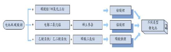 電池級(jí)碳酸鋰與鋰電池的產(chǎn)業(yè)路徑圖: