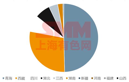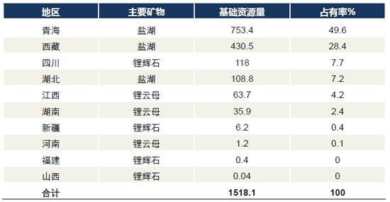 我國(guó)各省鋰資源儲(chǔ)量分布: