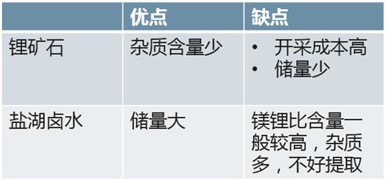 鋰礦石與鹽湖鹵水的優(yōu)缺點(diǎn):