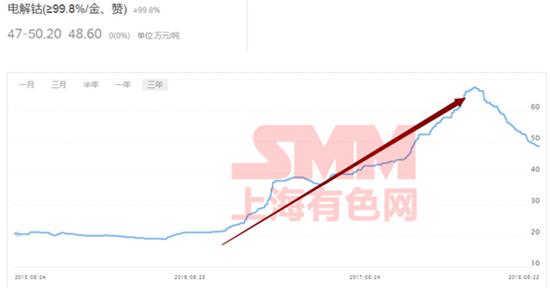 近年來(lái)電解鈷與金屬鋰的價(jià)格: