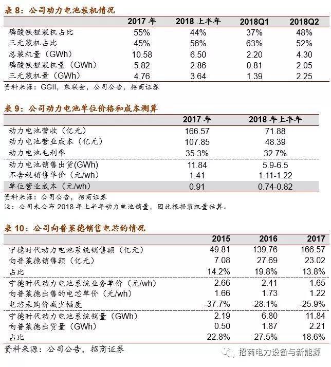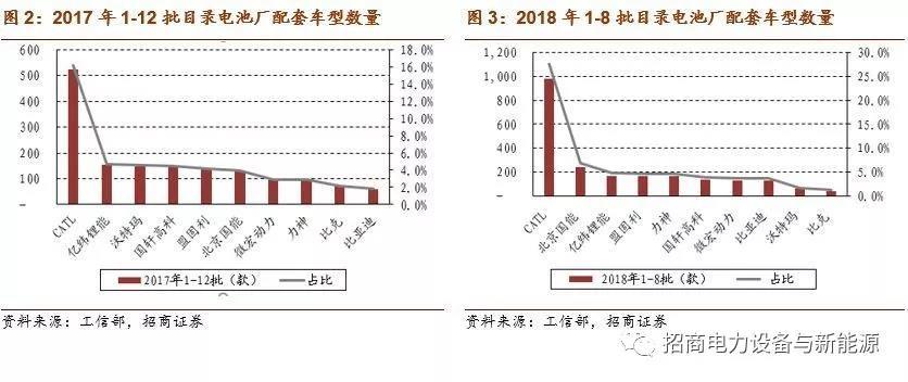 目錄方面,2017年12批和2018年1-8批目錄中CATL配套數(shù)量占比分別為16.1%、27.6%持續(xù)位居第一位,高配套數(shù)量也帶動公司裝機量持續(xù)增長。
