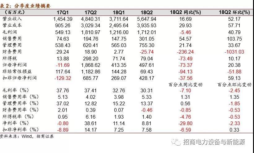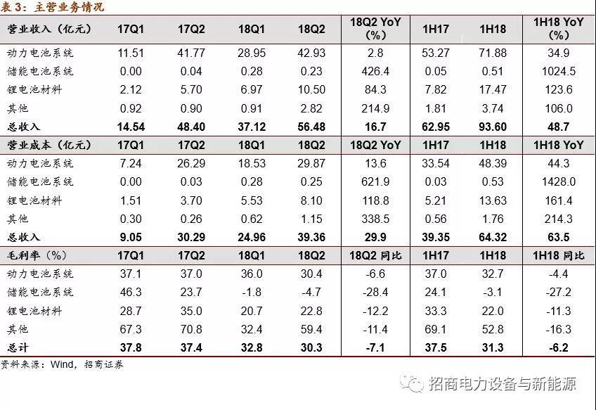 分季度看,2018Q2公司扣非后凈利潤為4.28億元,同比下滑33%。今年Q2公司業(yè)績增速與裝機量增速出現(xiàn)較大偏差,主要源于1)Q2公司動力電池價格下滑較多,帶來毛利率下滑同比下滑6.6個百分點至30.4%;2)Q2鋰電材料營業(yè)成本同比大幅上升,拖累毛利率同比下滑12.2個百分點至22.8%。