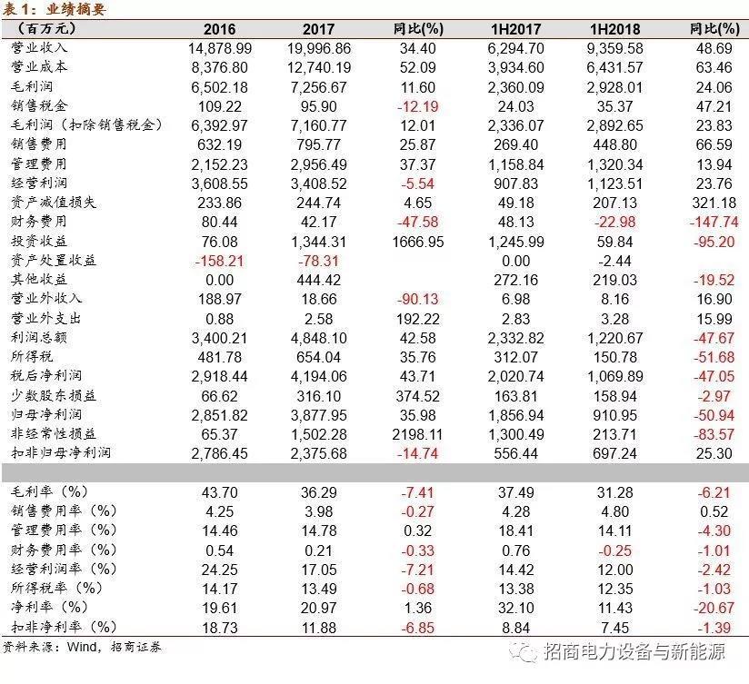 上半年公司實現(xiàn)營收、歸上凈利、扣非凈利93.6、9.11、6.97億元,同比增長48.7%、下滑49.7%、增長36.5%,業(yè)績符合中報業(yè)績預(yù)告預(yù)估范圍。上半年歸上凈利潤同比下滑主要系去年同期產(chǎn)生13億元左右的非經(jīng)常性損益,其中包括2017年4月作價約10.93億元出售給東方精工的普萊德23%股權(quán)的處置收益,扣非后,公司上半年業(yè)績同比增長36.5%。此外,上市前公司調(diào)整權(quán)益工具公允價值的確定方法,導(dǎo)致1H17歸上凈利和扣非凈利均減少約0.46億元。
