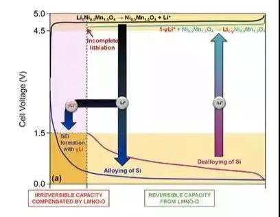 如美國阿貢國家實(shí)驗(yàn)室的Xin Su等人,就通過在LiCoO2正極里添加7%的Li5FeO4(LFO)材料,使得電池的首次效率提高了14%,并顯著的改善了電池的循環(huán)性能。Li5FeO4材料的理論比容量可達(dá)700mAh/g,并且?guī)缀跛械娜萘坎豢赡妗?