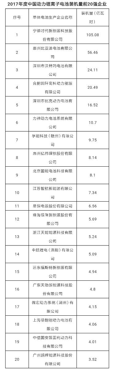 中國(guó)化學(xué)與物理電源行業(yè)協(xié)會(huì)的調(diào)研數(shù)據(jù)顯示,2016年,排名前20動(dòng)力電池企業(yè)裝機(jī)量占比為83.1%,前5企業(yè)裝機(jī)量占比為 64.5%。2017年,前20企業(yè)裝機(jī)量320.9億瓦時(shí),占比87%;前5企業(yè)裝機(jī)量223.43億瓦時(shí),占60.5%。2018年前4個(gè)月,前20企業(yè)裝機(jī)量79.41億瓦時(shí),占比96.5%;包括寧德時(shí)代、比亞迪在內(nèi)的前5企業(yè)裝機(jī)量占比82.1%。