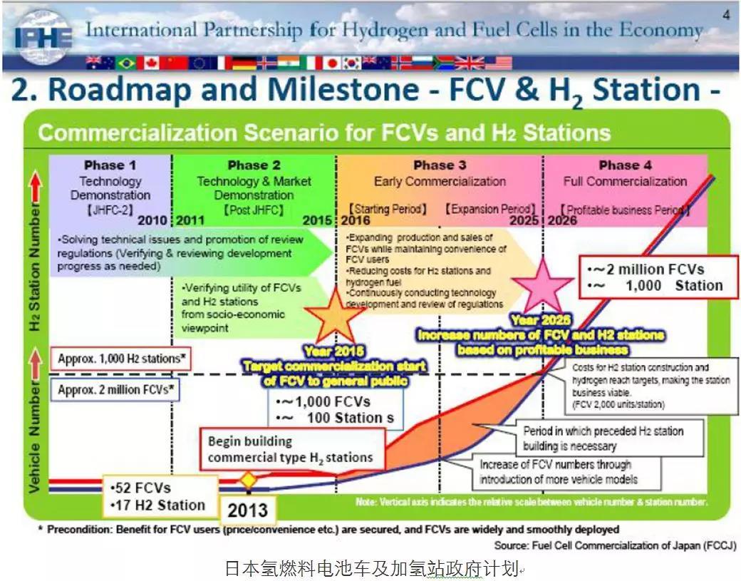 在銷量和加氫站建設(shè)方面,2016年,日本氫燃料電池車銷量1000輛,已建成100座加氫站。2026年,政府計劃完成200萬輛氫燃料電池車的銷售目標(biāo)以及1000座加氫站的建設(shè)目標(biāo)。