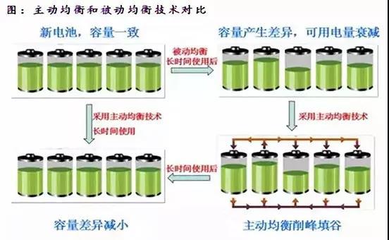 主動(dòng)均衡充電時(shí)將多余電量轉(zhuǎn)移至高容量電芯,放電時(shí)將多余電量轉(zhuǎn)移至低容量電芯,可提高使用效率,但是成本更高,電路復(fù)雜,可靠性低。未來隨著電芯的一致性的提高,對(duì)被動(dòng)均衡的需求可能會(huì)降低。