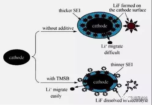 通過開發(fā)和應用新型的高壓電解液體系或者高壓成膜添加劑來提高電極/電解液界面的穩(wěn)定性是研發(fā)高電壓型電解液的有效途徑,從經濟角度來說,后者往往更受青睞。這種提高電解液耐受電壓能力的添加劑一般包括含硼類、有機磷類、碳酸酯類、含硫類、離子液體及其它類型添加劑。含硼類添加劑有三(三甲基烷)硼酸酶、雙草酸硼酸鋰、雙氟草酸硼酸鋰、四甲基硼酸酯、硼酸三甲酯以及三甲基環(huán)三硼氧烷等。有機磷類添加劑包括亞磷酸酯、磷酸酯類。碳酸酯類添加劑包括含氟皖基化合物。含硫添加劑包括1,3-丙磺酸內酯、二甲磺酰甲烷、三氟甲基苯硫醚等。離子液體類添加劑包括咪唑和季磷鹽類。