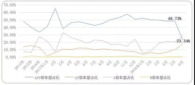 車型銷量結(jié)構(gòu):A00級向下,A0級、A級向上
