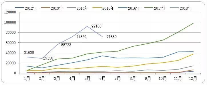 2012年1月-2018年6月新能源乘用車銷量走勢
