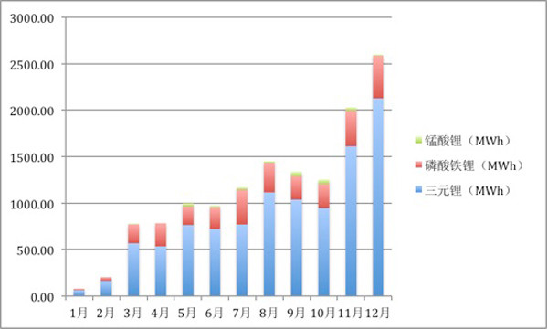 2017年新能源乘用車領(lǐng)域動力電池月度出貨量情況