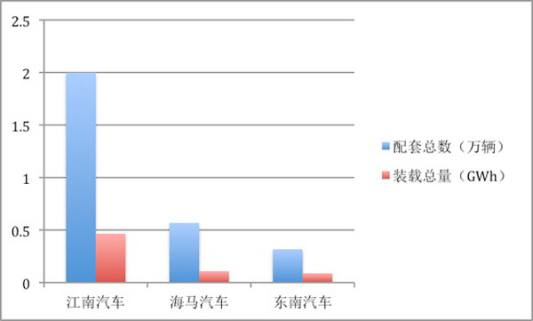 2017年,比克動力電池配套總數(shù)為3.44萬輛,江南汽車配套裝機數(shù)量最多為2萬輛;裝機總量為0.84GWh,江南汽車排名第一,裝機量達0.47GWh。