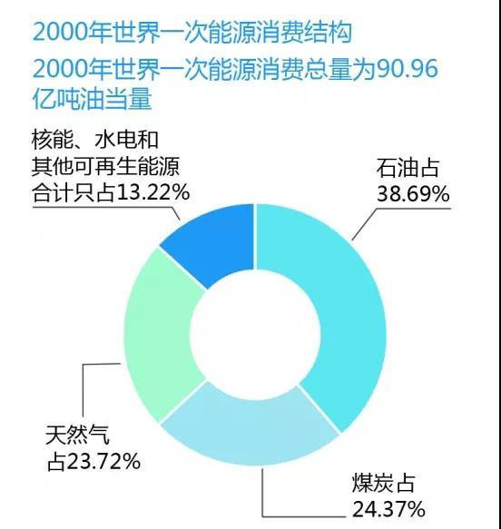 與2000年相比,2017年世界一次能源消費(fèi)結(jié)構(gòu)的比例變化更小,石油、煤炭和天然氣在一次能源消費(fèi)結(jié)構(gòu)中的比重僅下降1.59個(gè)百分點(diǎn),其中煤炭的比重還增長(zhǎng)了3.25個(gè)百分點(diǎn)。