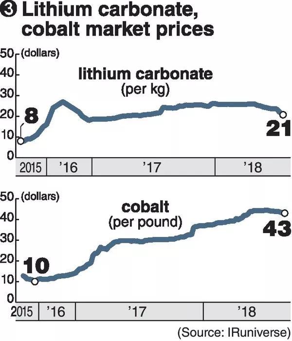 根據(jù)獨(dú)立研究機(jī)構(gòu)IRuniverse的調(diào)研,鋰(碳酸鋰)現(xiàn)貨合同價(jià)格為21美元/千克,幾乎比2015年秋季時(shí)鋰價(jià)格高出兩倍多,當(dāng)時(shí)在8美元/千克左右。鈷的交易價(jià)格約為43美元/磅(相當(dāng)于95美元/千克),高出2015年秋季的四倍多。IRuniverse總裁Yuji Tanamachi指出:“鑒于電動(dòng)汽車將迎來全面繁榮,大量投資資金涌入,當(dāng)前的環(huán)境輕而易舉就刺激鋰/鈷價(jià)格上漲?!?