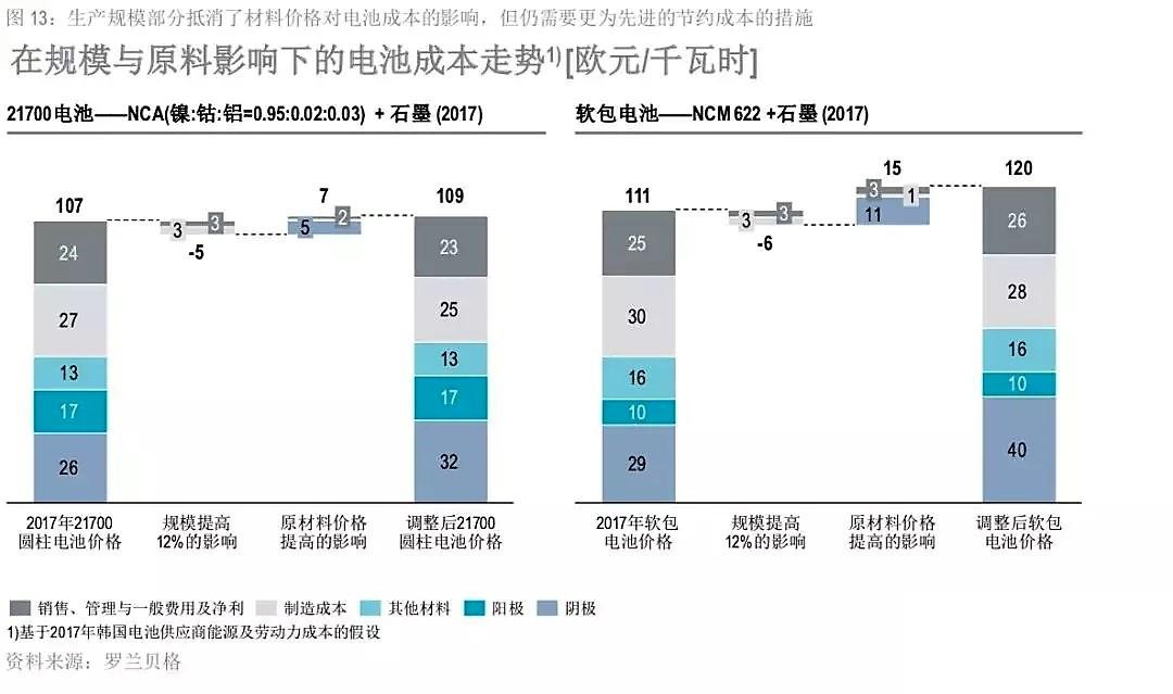指數(shù)認(rèn)為,采用鋰鎳鈷鋁為基礎(chǔ)的陰極材料和硅或鋰金屬箔等先進(jìn)的陽極材料開發(fā)下一代電池組。從以NCM622為基礎(chǔ)的到鎳含量超過70%的化學(xué)電池,電池單體能量比提升,有望削減20%-25%的成本。
