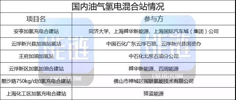 目前,國(guó)內(nèi)混合站數(shù)量較少,具體國(guó)內(nèi)油氣氫電混合站情況如下: