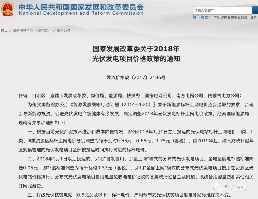 2017年12月19日,國家發(fā)展改革委《關(guān)于2018年光伏發(fā)電項目價格政策的通知(發(fā)改價格規(guī)〔2017〕2196號)》,提出: