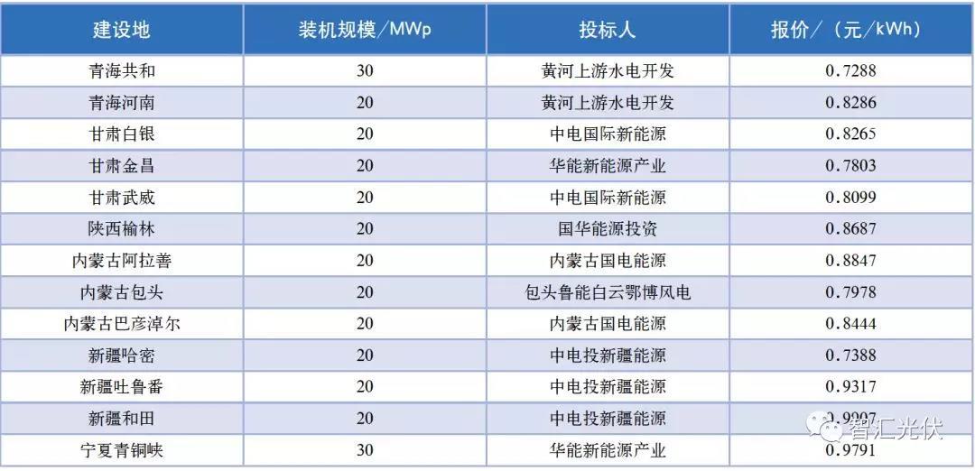 2010年7月國家啟動第二批光伏特許權(quán)電站的招標(biāo),涉西部8省區(qū)13個項目,共計280MW。2010年光伏特許權(quán)招標(biāo)最低價為0.73元/kWh,并且多數(shù)價格在0.82-0.91元/kWh區(qū)間內(nèi),具體如下表所示。