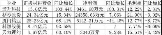 但是在凈利潤(rùn)方面,除當(dāng)升科技大增以外,其余企業(yè)的凈利增長(zhǎng)幅度都比較小,廈門(mén)鎢業(yè)甚至出現(xiàn)大幅下滑。而在產(chǎn)品毛利率方面全部則是全面下滑,這也是三元正極材料企業(yè)增收不增利的主要原因。