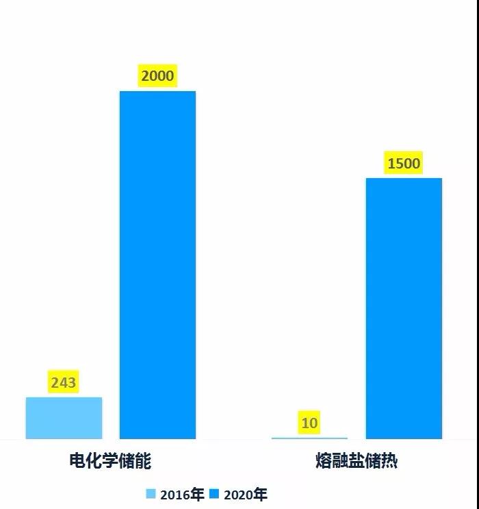 圖2.到2020年熔融鹽儲熱和點化學(xué)儲能發(fā)展規(guī)模估算(單位:MW)