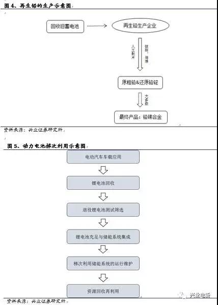 在儲(chǔ)能技術(shù)的發(fā)展應(yīng)用中,梯次利用的引入十分關(guān)鍵。從儲(chǔ)能電池的材料方面來(lái)看,鉛是十分重要的原材料,鉛的有效回收利用對(duì)降低鉛炭電池的成本有積極的推進(jìn)作用。圖4展示了再生鉛的大致生產(chǎn)流程。通過(guò)回收已使用過(guò)的儲(chǔ)能電池,分離出鉛并進(jìn)行一系列加工,最終生產(chǎn)出可以被再次利用的鉛產(chǎn)品。如今,鉛回收利用已經(jīng)是非常成熟的產(chǎn)業(yè),2014年我國(guó)再生鉛產(chǎn)量達(dá)到約160萬(wàn)噸,同比增長(zhǎng)6.7%,占鉛產(chǎn)量的38%。隨著鉛回收技術(shù)的進(jìn)一步提升,目前鉛的回收率可以達(dá)到98%以上。再生鉛技術(shù)的發(fā)展與應(yīng)用對(duì)未來(lái)進(jìn)一步降低儲(chǔ)能成本而言是一個(gè)十分重要的因素。