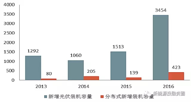 基于近幾年化學(xué)儲(chǔ)能技術(shù)的飛速發(fā)展,化學(xué)儲(chǔ)能成本不斷降低,儲(chǔ)能經(jīng)濟(jì)性為化學(xué)儲(chǔ)能的進(jìn)一步商業(yè)化應(yīng)用與推廣提供了前提條件。另外,在大力支持和發(fā)展可再生能源的政策背景下,近幾年我國的新增光伏裝機(jī)容量大體上呈現(xiàn)出一個(gè)上漲的趨勢。根據(jù)相關(guān)數(shù)據(jù)統(tǒng)計(jì)顯示,截至2015年底,我國的光伏發(fā)電累計(jì)裝機(jī)容量就已達(dá)到4318萬千瓦,成為全球光伏發(fā)電裝機(jī)容量最大的國家;截至2016年底,我國的新增和累計(jì)光伏裝機(jī)容量均達(dá)到了全球第一。分布式項(xiàng)目在近年也持續(xù)增長,2016年分布式光伏發(fā)電新增裝機(jī)容量相比于2015年增長了200%。分布式裝機(jī)容量的快速增長同時(shí)帶動(dòng)了儲(chǔ)能裝機(jī)容量的快速增長。