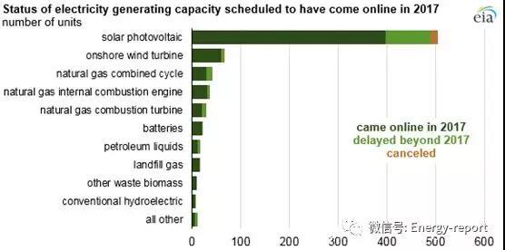 中國儲(chǔ)能網(wǎng)訊:根據(jù)美國能源信息署數(shù)據(jù),2018年美國將增加25.1GW電力裝機(jī)容量。這些增量中的19.7GW(78%)已按照計(jì)劃于去年并網(wǎng)。大約5.3GW的規(guī)劃裝機(jī)容量推遲到今年或之后幾年建設(shè)。少量項(xiàng)目被取消。