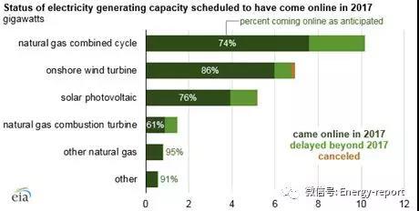 核電裝機(jī)增量也面臨推遲并網(wǎng):在2013年年末,田納西州的沃茨巴(WattsBar)核電站2號(hào)機(jī)組預(yù)計(jì)在2015年并網(wǎng),而另外兩個(gè)核電站預(yù)計(jì)在2017年并網(wǎng)。但實(shí)際上,沃茨巴(WattsBar)核電站2號(hào)機(jī)組2016年6月才完成并網(wǎng),其他的兩個(gè)項(xiàng)目(佐治亞州的沃格特勒<Vogtle>核電站3號(hào)、4號(hào)機(jī)組和南加州的桑默核電站<VirgilC.Summer>2號(hào)和3號(hào)機(jī)組)并網(wǎng)無限期推遲。
