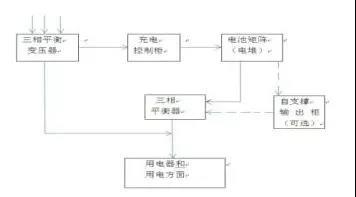 圖中的《自支撐輸出柜》是可選的,如采用,可以增加儲能電池矩陣的輸出能量。