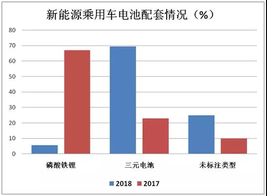在2018年首批公示的36款新能源乘用車配套電池類型中,三元鋰電池25款,占比達69%,相比2017年增加了46%。