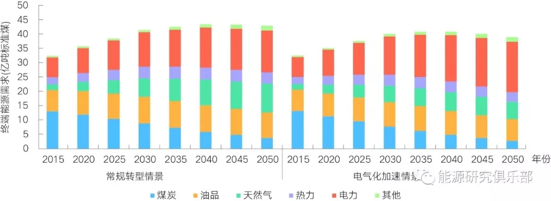 圖5 電氣化加速情景下一次能源需求結(jié)構(gòu)變化
