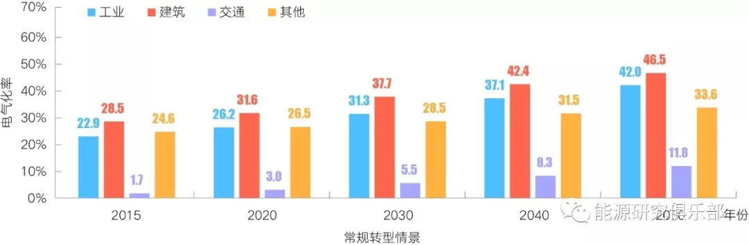 圖6 各部門電氣化水平
