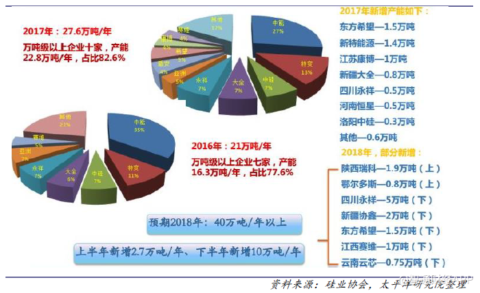 從供需角度來看,多晶硅料2018年底預期產能在40萬噸/年,新增產能約12-13萬噸/年,考慮到大部分產能要在年底釋放,全年產量在28-30萬噸/年,另外預計進口量維持在13-15萬噸,因此今年的總供給量為40-45萬噸。而對應的下游硅片產量需求是100GW,多晶硅的消耗量在40萬噸,因此我們預計今年基本上供需平衡,上半年供給偏緊,下半年供略大于求,隨著年底搶裝結束之后,19年一季度淡季來臨之時,供給大于需求的局面將會擴大,硅料價格將出現(xiàn)進一步的下滑。因此我們認為,從毛利率和供需兩個角度來看,硅料的價格都會達到一個合理的區(qū)間,并且對應在平價水平9.6萬元/噸的價格是非常容易實現(xiàn)的。